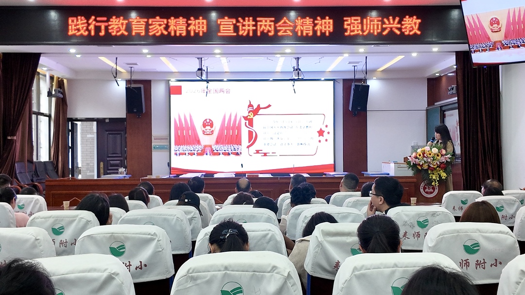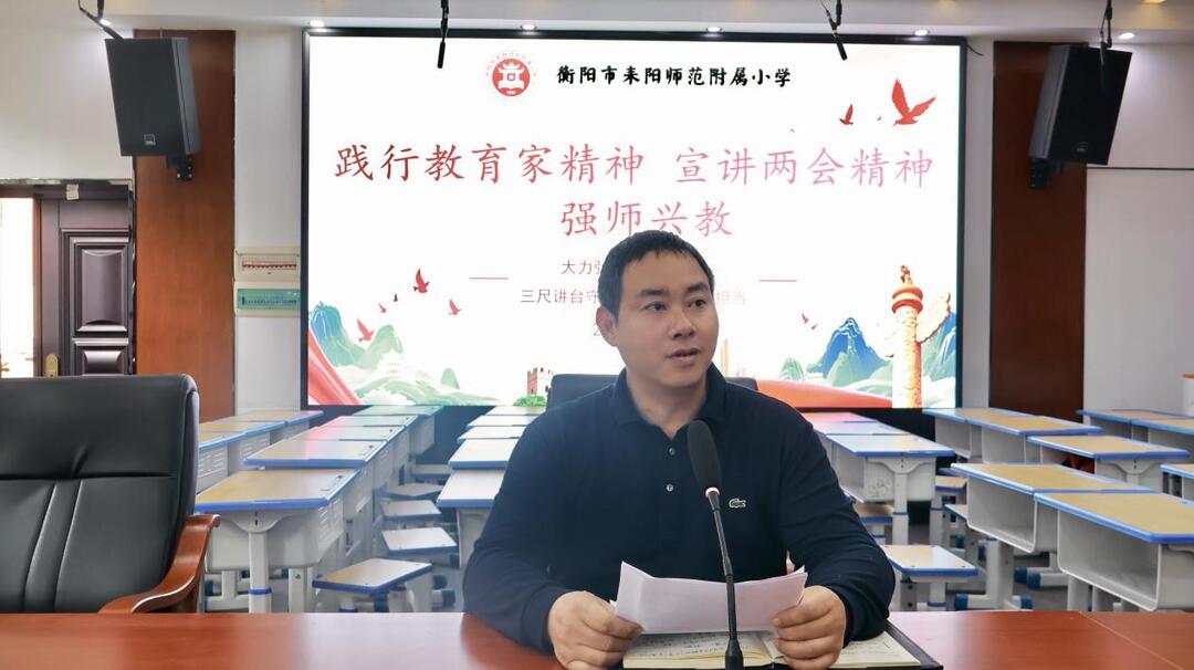 4月13日下午,衡陽市耒陽師范附屬小學舉行師德師風專題學習活動?;顒犹匮珖鴥?yōu)秀共產黨員、感動中國2023年度人物、第十四屆全國人大代表劉玲琍老師到校講座。全校教師齊聚一堂,共學兩會精神,共悟育人初心 。