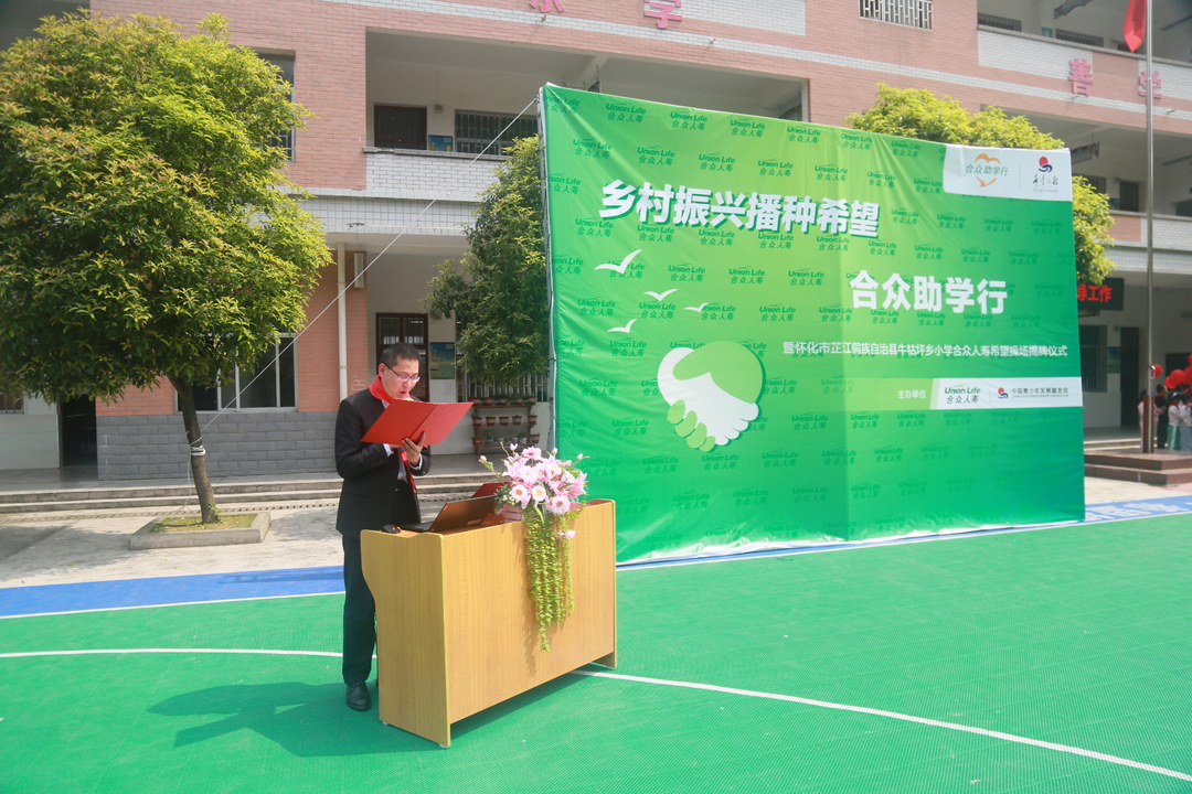 參加現(xiàn)場儀式的領(lǐng)導(dǎo)還有懷化市保險行業(yè)協(xié)會秘書長、牛牯坪鄉(xiāng)鄉(xiāng)長、副書記等政府領(lǐng)導(dǎo),并共同為“合眾希望操場”揭牌。懷化市保險行業(yè)協(xié)會羅秘書長代表行業(yè)發(fā)表講話,對合眾人壽切實(shí)履行保險企業(yè)社會責(zé)任、關(guān)愛鄉(xiāng)村兒童的善舉給予了高度評價。
