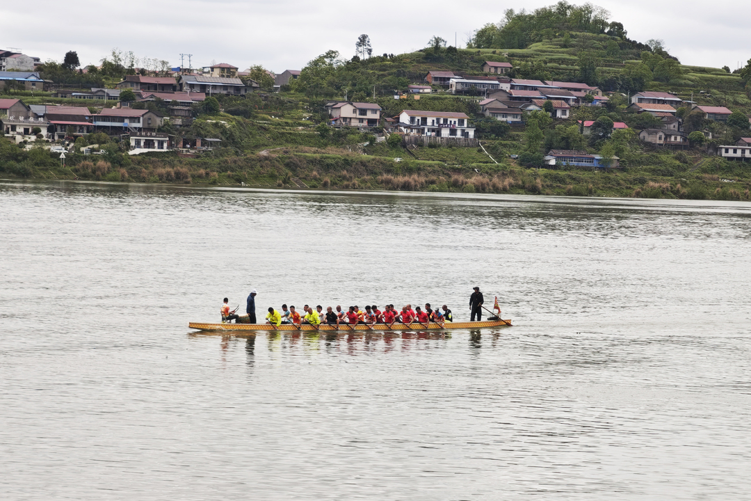 “咚!咚!咚咚咚……”伴隨著鼓點(diǎn),22名船上隊(duì)員動(dòng)作整齊劃一,手中的船槳如利劍般刺入水中,又奮力劃出,激起層層白浪,將寬闊的沅水撕開(kāi)一道狹長(zhǎng)的水痕。船頭的鼓手身姿挺拔,鼓點(diǎn)起落間,凝聚著全隊(duì)的力量;船尾的艄公目光如炬,穩(wěn)穩(wěn)把控著龍舟的航向,每一個(gè)細(xì)節(jié)都彰顯著這支隊(duì)伍的默契與堅(jiān)韌。誰(shuí)能想到,這支在江面之上揮灑自如的隊(duì)伍,4月10日才匆匆組建,僅用兩天時(shí)間便完成集結(jié),4月12日便正式下水展開(kāi)高強(qiáng)度訓(xùn)練,用速度與激情詮釋著“沅陵龍舟精神”。